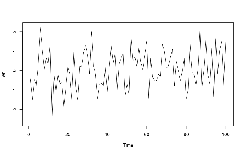 wn <- arima.sim(model = list(order = c(0,0,0)), n=100) ts.plot(wn)