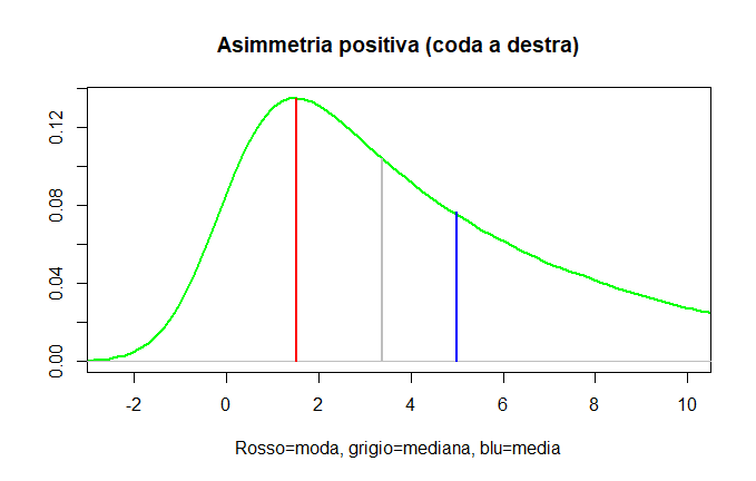 Asimmetria positiva = coda a destra = Media > Mediana > Moda