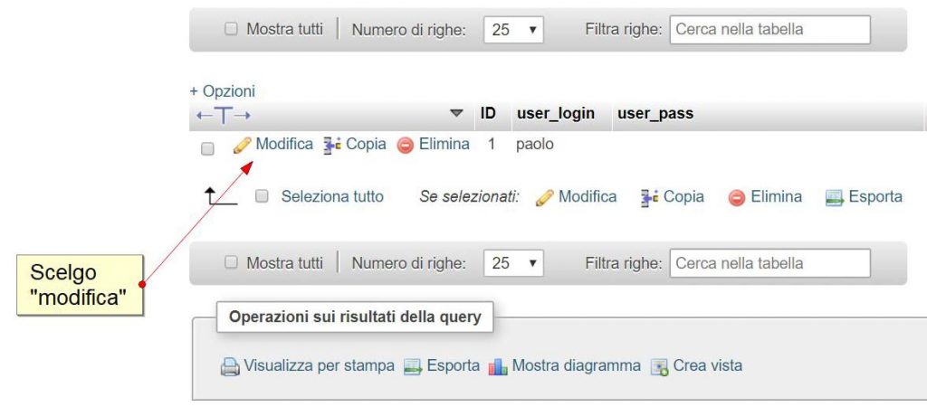 Ipotizzo che si abbia accesso al database del nostro wordpress tramite la comoda interfaccia fornita da phpmyadmin.