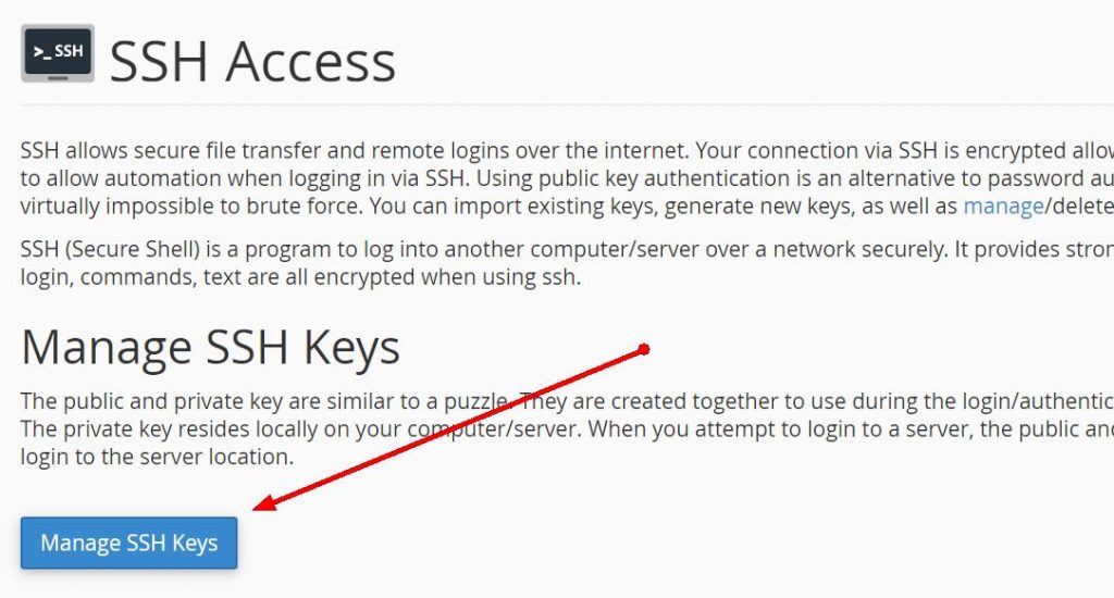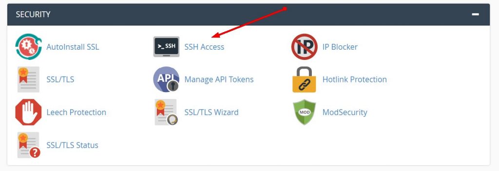 Il primo passaggio è entrare nel cPanel fornito dal servizio di hosting e trovare l’icona di “SSH Access”, cliccandola.