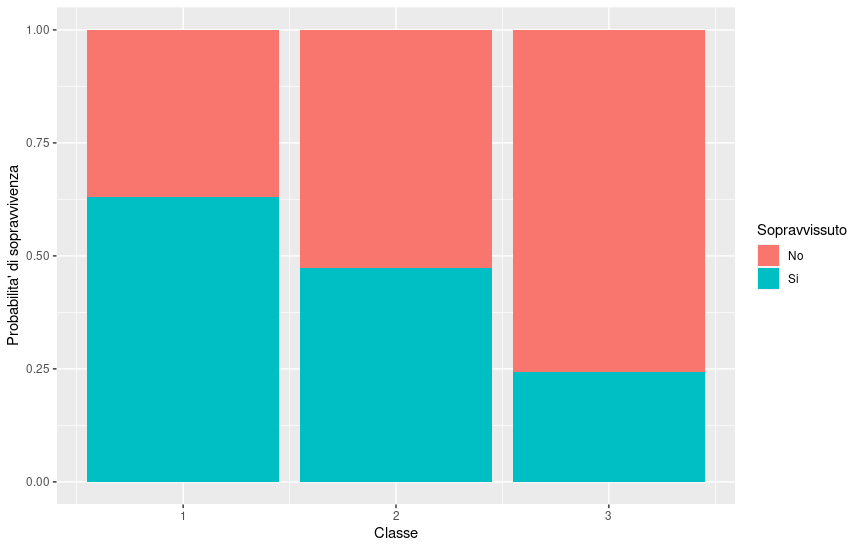 labs(x = "Classe", y = "Probabilita' di sopravvivenza") +