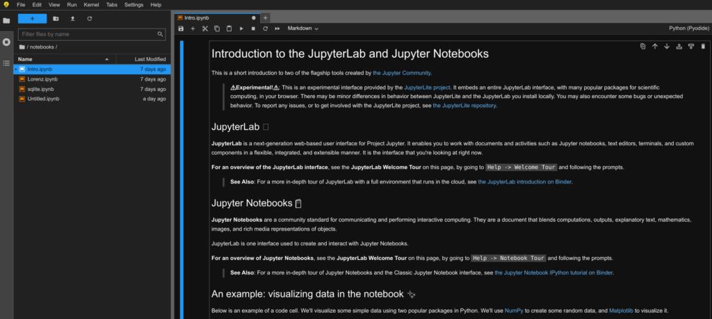 Esiste anche la possibilità di testare l’ambiente direttamente nel browser con JupiterLite: